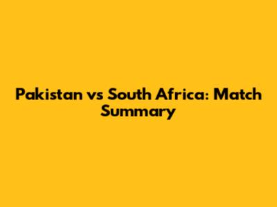 Pakistan vs South Africa: Match Summary