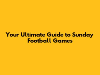 Your Ultimate Guide to Sunday Football Games